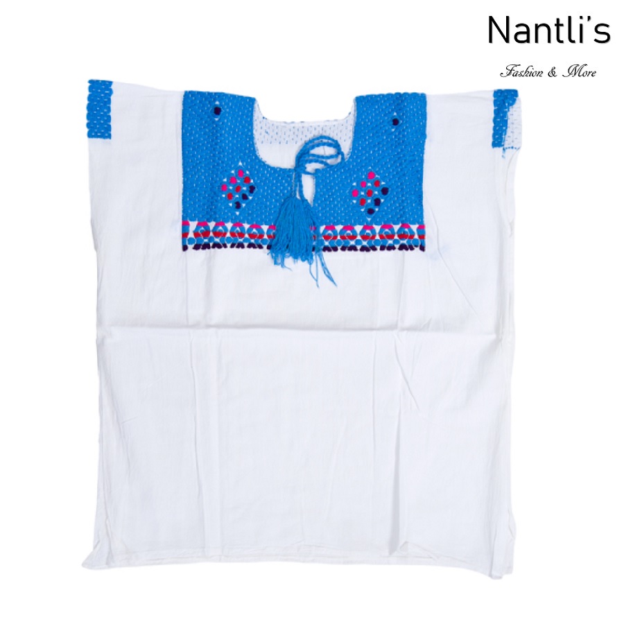 Blusa Bordada Mayoreo TM77201 White-Blue Blusa Bordada de manta Mujer Mexican Embroidered Blouse Nantlis Tradicion de Mexico