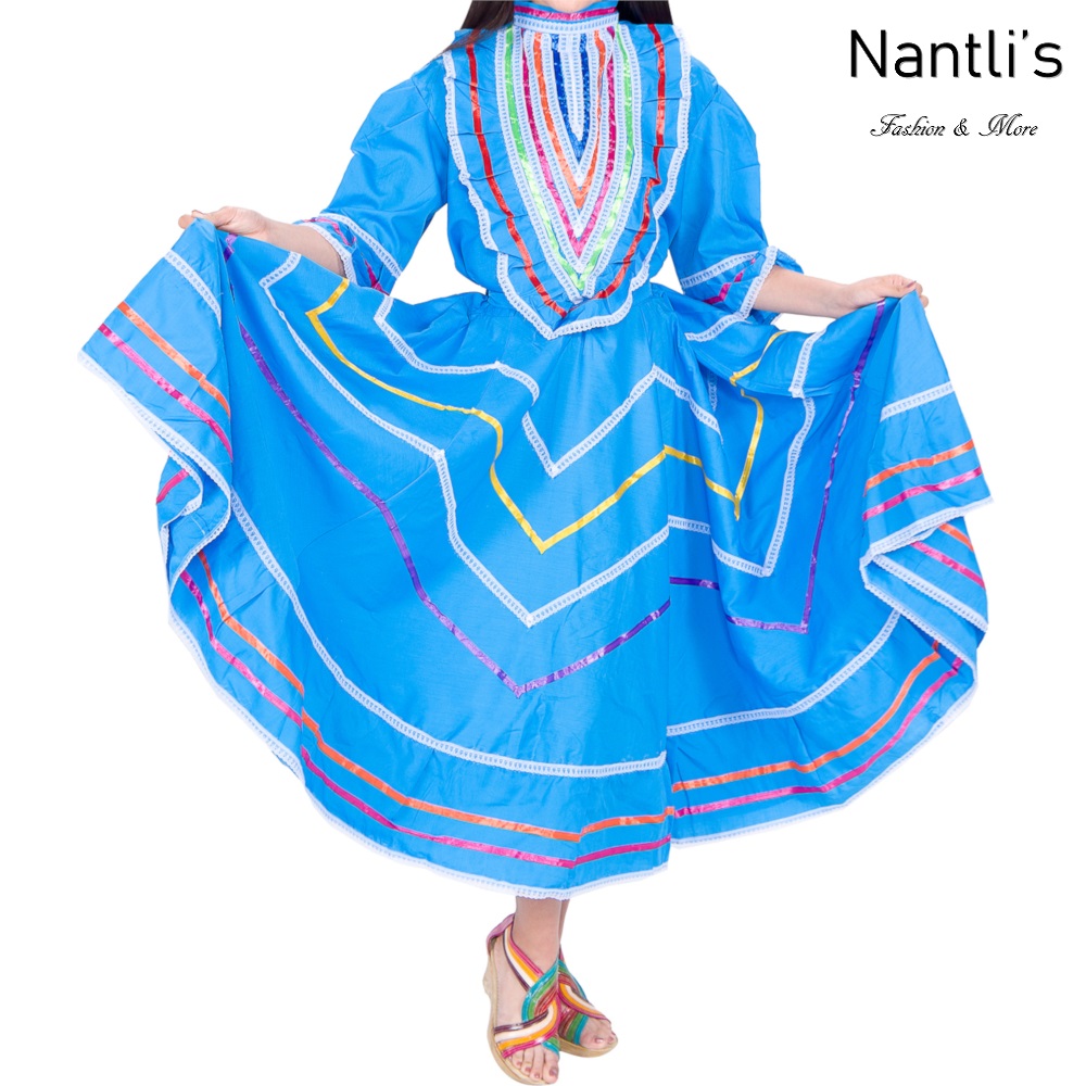 Traje tipico Mexicano Mayoreo TM74142 Blue Vestido Folklorico estilo Jalisco mujeres y ninas women and girls Nantlis Tradicion de Mexico
