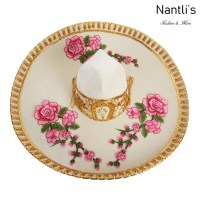 sombreros charros mayoreo TM-71235 Beige-Gold With Flowers Sombrero Charro Nantlis Tradicion de Mexico